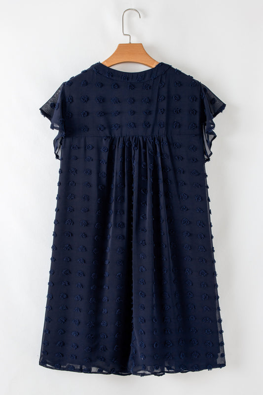 Navy Blue Textured Velvet Button Dress