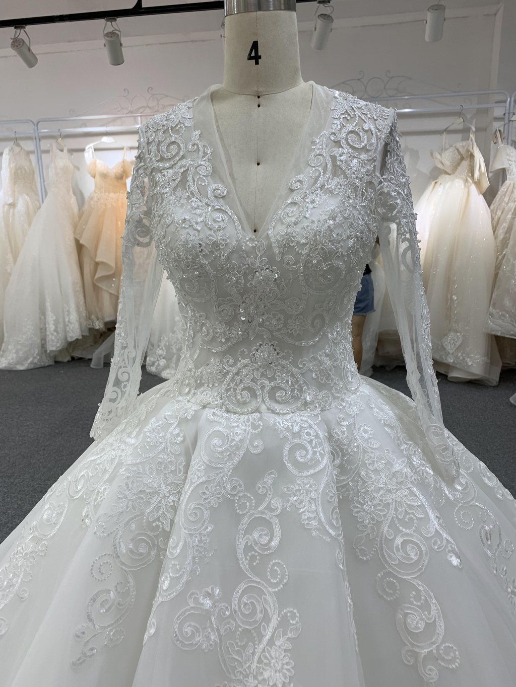 Enchanting Lace Ball Gown: Elegant V-Neck Long Sleeve Wedding Dress for Your Dream Ceremony