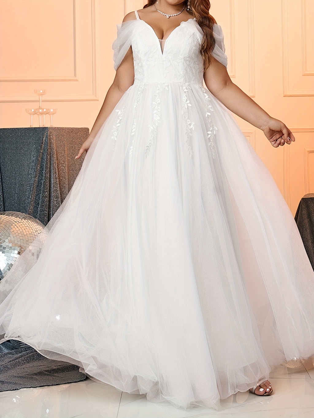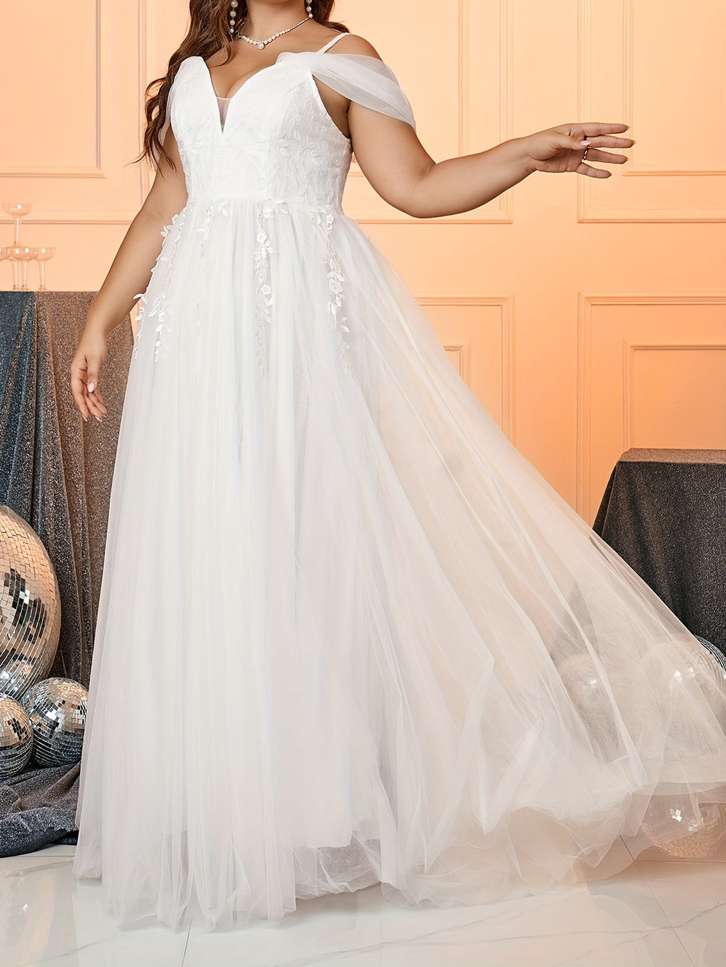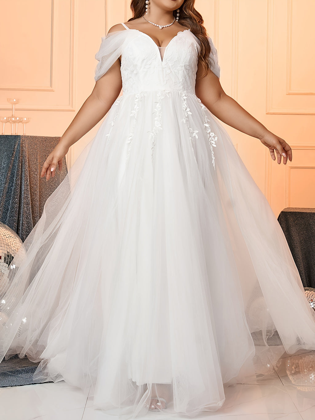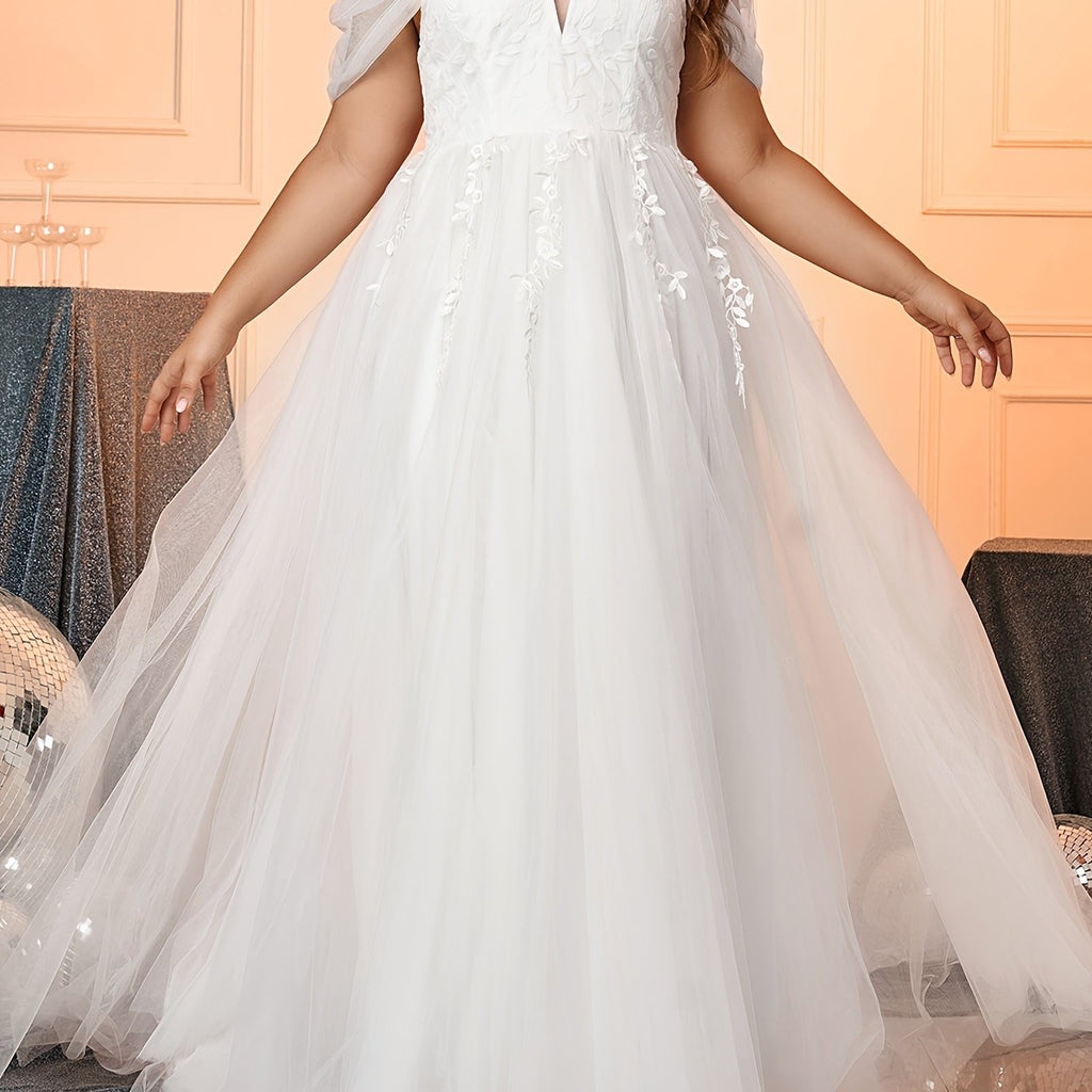 Plus Size Floral Pattern Wedding Dress